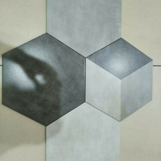 Roman GH348070 dTravessa Cube 34x39 hexagon Merk Roman Ceramic Kategori Keramik Lantai Lokasi Outdoor Indoor Kamar Mandi Dapur Garasi Warna Grey